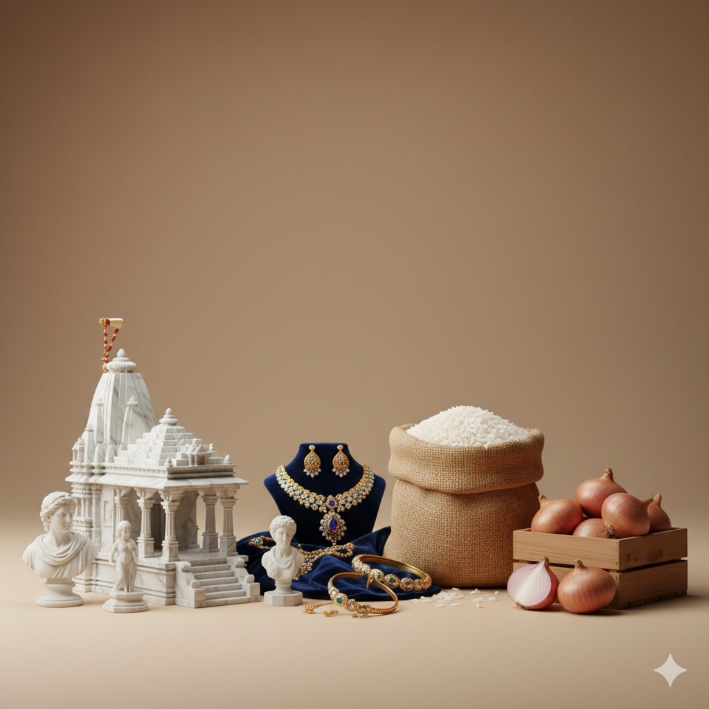 Partner with Vinsa Export to experience the authentic essence of India — premium Marble Products, Imitation Jewellery, Gold & Silver Jewellery, Rice, and Fresh Onions, delivered with unmatched quality, purity, and care.